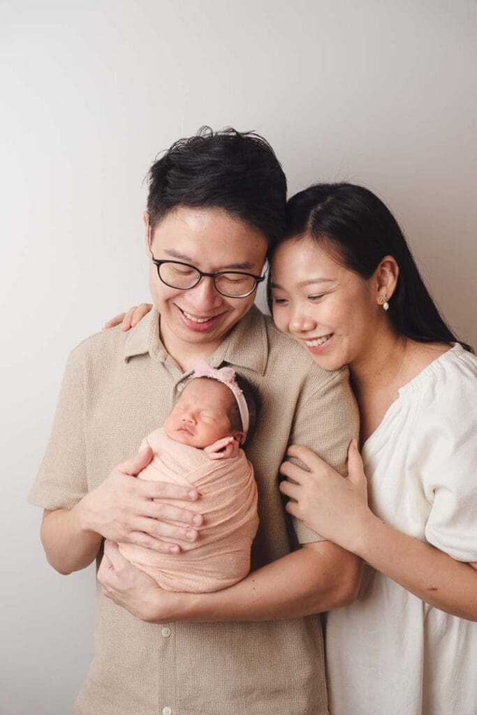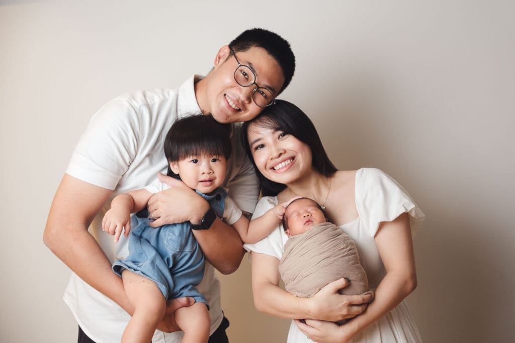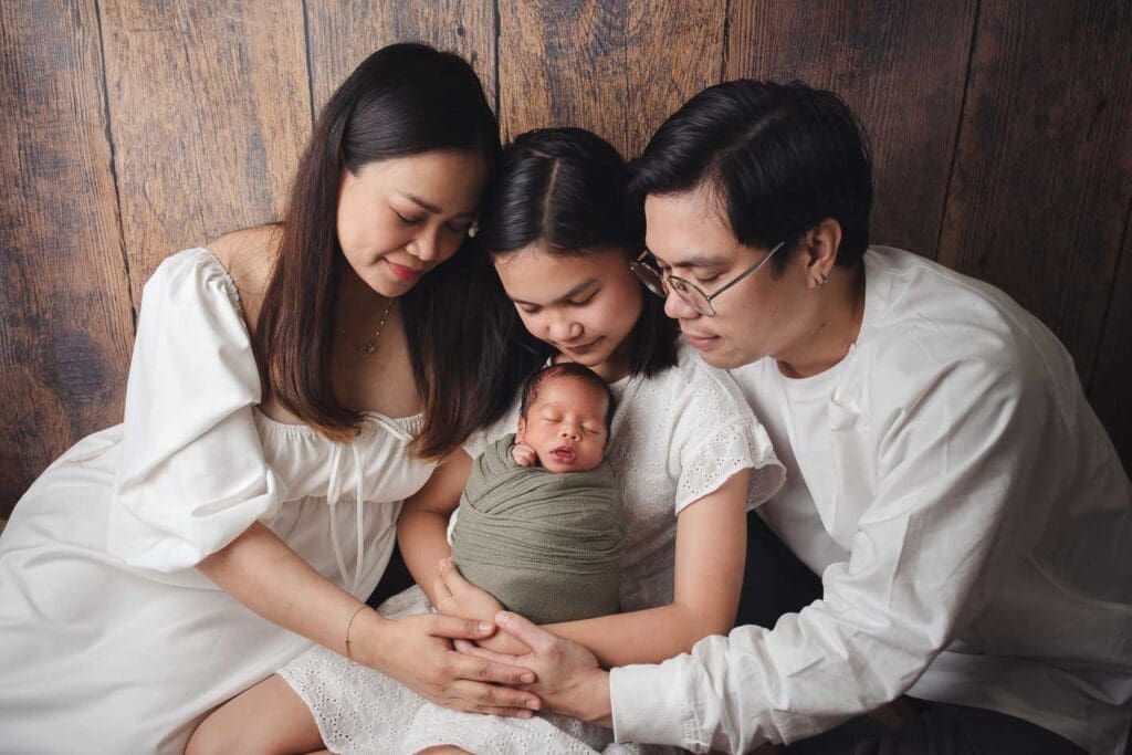The Reality: Family portraits typically add only 20-30 minutes to your newborn photoshoot session, as you’re working within the same setup and lighting that’s already established.