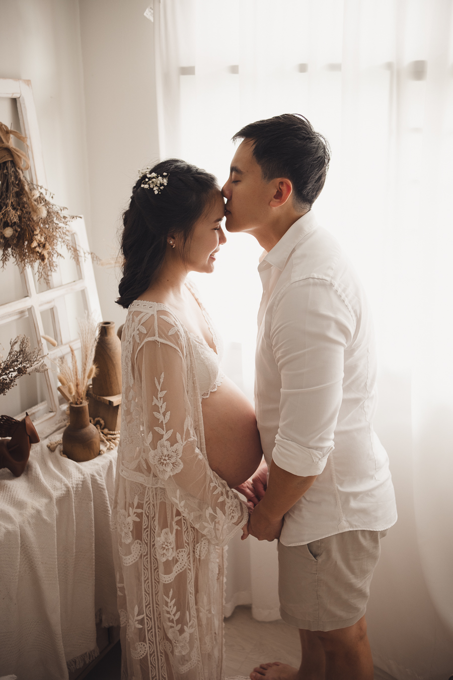 From the more conservative individuals to the bold personas, pick from a collection of elegant maternity dresses designed specifically for maternity photography that suits your preference, each hand-picked to accentuate your beautiful baby bump. No additional charges.